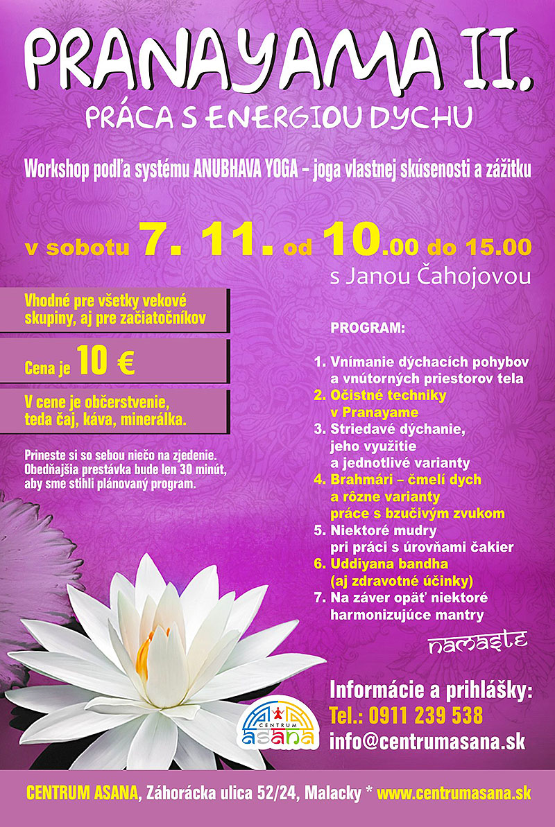 Pranayama – práca s energiou dychu Mapa nie je dostupná Dátum/čas Date(s) - 07/11/201510:00 - 15:00 Kategórie Žiadne Kategórie